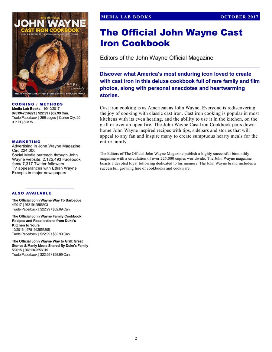 The Official John Wayne 5 Ingredient Homestyle Cookbook Paperback