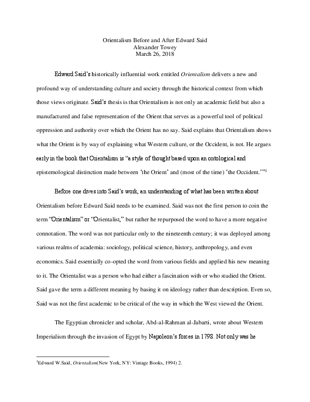 Doc Orientalism Before And After Edward Said Alex Towey